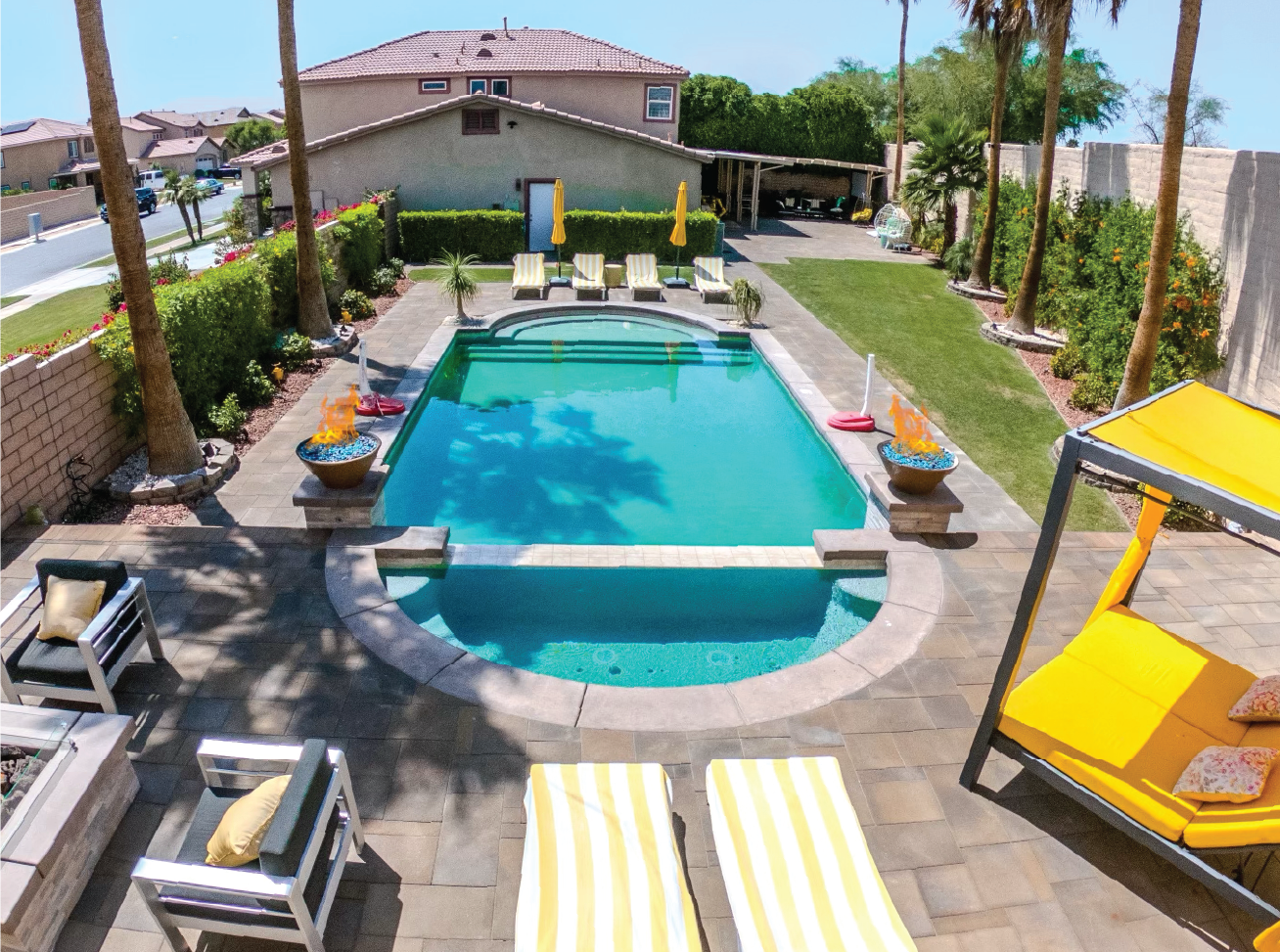 ☀ Resort-style outdoor space; saltwater pool + spa, fire pit, BBQ,